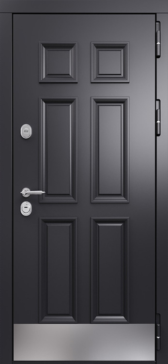 Входная дверь с МДФ №566 создана для тех, кто ценит прочность металла и уютный внешний вид в одном решении. Она одинаково хорошо вписывается в частный дом, квартиру или офис, подчеркивая солидность пространства и обеспечивая надежную защиту. Каркас и полотно собраны из профильных труб, усиленных ребрами жесткости, а стальной лист толщиной 2 мм гарантирует устойчивость к взлому и длительный срок службы. С обеих сторон дверь облицована МДФ панелями с ПВХ-покрытием, что делает поверхность более устойчивой к истиранию и мелким повреждениям, сохраняя привлекательность даже при интенсивной эксплуатации. Панели легко очищаются и не выгорают на солнце, благодаря чему дверь подходит и для уличной установки. Два контура уплотнения надежно защищают от сквозняков и посторонних запахов, а при необходимости можно дополнительно усилить конструкцию тепло- и шумоизоляцией. Модель №566 сочетает в себе сдержанный дизайн и функциональность, делая ее практичным выбором для самых разных помещений. Входная дверь с МДФ №566 от производителя: быстрое изготовление и монтаж в Черноголовке, индивидуальные размеры, широкий выбор материалов и фурнитуры, официальная гарантия до 10 лет.