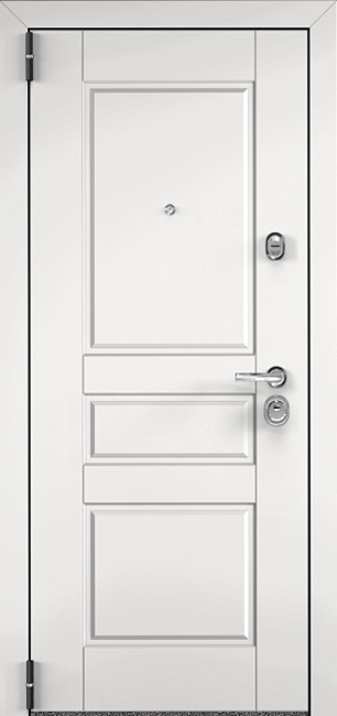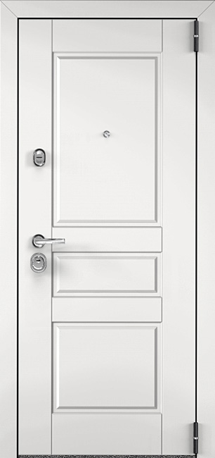 Белая металлическая дверь входная для дома №33 выделяется своим свежим и современным обликом. Универсальный белый цвет делает её уместной как в частном коттедже, так и в квартире или офисе, визуально добавляя простора и подчеркивая аккуратность фасада или интерьера. Конструкция двери основана на стальном листе толщиной 2 мм и усилена профильными трубами, что гарантирует надежность и устойчивость к нагрузкам. Важная особенность модели — наличие терморазрыва в полотне и коробке: благодаря этому дверь не промерзает в зимний период, исключается конденсат и сохраняется комфорт внутри помещения. Внешняя и внутренняя отделка выполнена из МДФ с ПВХ-покрытием, которое защищает поверхность от влаги и механических повреждений, сохраняя первозданный вид надолго. Два контура уплотнителя обеспечивают герметичность и дополнительную защиту от сквозняков. Эта дверь удачно сочетает эстетику и практичность, создавая надежный вход в любое жилище. Белая металлическая дверь входная для дома №33 от производителя: быстрое изготовление и монтаж в Черноголовке, индивидуальные размеры, широкий выбор материалов и фурнитуры, официальная гарантия до 10 лет.