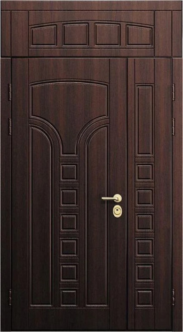 Полуторная дверь с фрамугой из массива №18 — это надежное и эстетичное решение для вашего интерьера. Благодаря внешней отделке из накладки МДФ, она отличается не только стойкостью к внешним воздействиям, но и сохраняет привлекательный вид на протяжении многих лет. Конструкция из профильной трубы 50х25 мм и лист металла толщиной 2 мм обеспечивает прочность, а ребра жесткости усиливают стойкость двери к нагрузкам. Замки от «Просам» и «Мосрентген» с тремя ригелями обеспечивают высокий уровень безопасности. Резиновый уплотнитель с двумя контурами защищает от холода и шума, создавая комфорт в помещении. Возможность добавления зеркала, стеклопакета или кованых элементов позволяет индивидуализировать внешний вид двери в соответствии с вашими предпочтениями. Полуторная дверь с фрамугой из массива №18 от производителя: быстрое изготовление и монтаж в Черноголовке, индивидуальные размеры, широкий выбор материалов и фурнитуры, официальная гарантия до 10 лет.