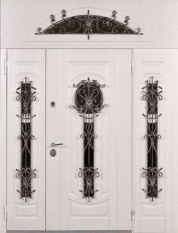 Входная дверь с кованой ручкой и фрамугой №6 представляет собой элегантное и надежное решение для тех, кто ценит не только безопасность, но и стиль. Эта модель идеально подойдет для оформления парадных входов в дома и офисы. Внешняя отделка из плиты МДФ придает двери современный и чистый вид, который сохраняется долго благодаря стойкости к внешним воздействиям. Благодаря профильной трубе с толщиной металла 2 мм и ребрам жесткости, конструкция двери гарантирует прочность и долговечность. Дополнительный элемент — кованая ручка, которая добавляет изысканности и подчеркивает высокий класс изделия. Стандартная комплектация не включает шумо- и теплоизоляцию, однако она может быть установлена по желанию. Резиновый уплотнитель с двумя контурами обеспечит хорошую герметичность, защищая от ветра и пыли. Подходит для установки как в частных домах, так и в офисах, привлекая внимание своим необычным и стильным дизайном. Входная дверь с кованой ручкой и фрамугой №6 от производителя: быстрое изготовление и монтаж в Черноголовке, индивидуальные размеры, широкий выбор материалов и фурнитуры, официальная гарантия до 10 лет.