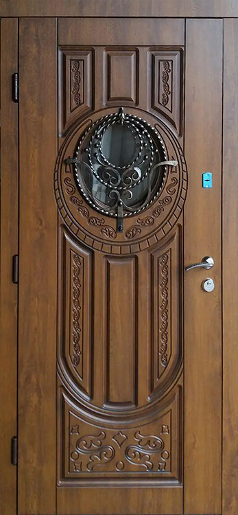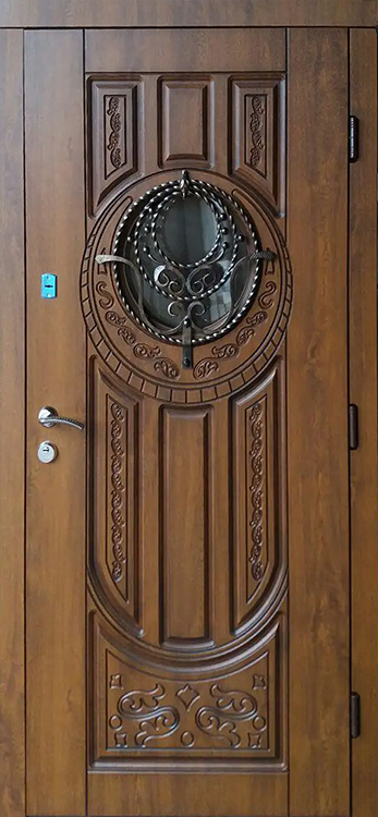Владельцы коттеджей ценят входные конструкции, которые одинаково подчеркивают статус и защищают от любых внешних факторов. Здесь удачно сочетаются прочный металл и массив дуба, придающий поверхности солидность и благородство. Натуральное дерево сохраняет цвет и текстуру долгие годы, устойчиво к механическим повреждениям и перепадам температуры. Внутри конструкции скрыт стальной каркас толщиной 1,5 мм с ребрами жесткости и противосъёмными блокираторами, что делает полотно практически неприступным. Особое преимущество — терморазрыв коробки и полотна, благодаря которому дверь не промерзает даже в сильные морозы и сохраняет тепло в доме. Именно на этом контрасте надежности и эстетики выделяется железная дверь со стеклом и ковкой №21, украшенная изящными декоративными элементами. Три контура магнитного уплотнения обеспечивают герметичность, а система замков Kale Kilit повышает уровень безопасности, при этом конструкция допускает установку современных умных решений и дополнительных декоративных опций. Железная дверь со стеклом и ковкой №21 от производителя: быстрое изготовление и монтаж в Черноголовке, индивидуальные размеры, широкий выбор материалов и фурнитуры, официальная гарантия до 10 лет.