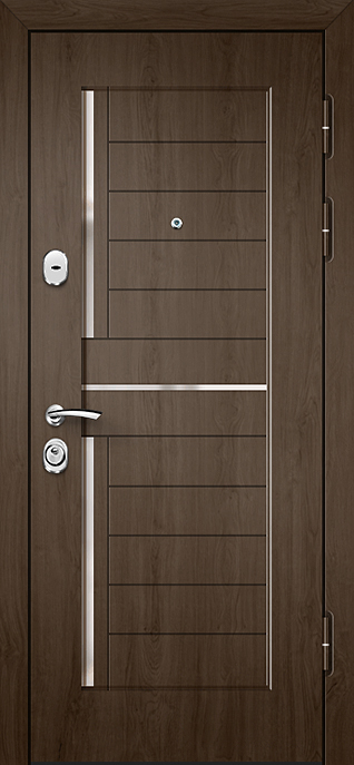 Глубокий оттенок венге всегда выглядит благородно и современно, а декоративная панель придаёт полотну завершённый стильный образ. Дверь МДФ цвета венге с внешней декоративной панелью №538 подходит для установки как в частных домах, так и в квартирах или офисах, где ценят сочетание надёжности и эстетики. Плиты МДФ отличаются прочностью, стойкостью к мелким механическим повреждениям и долго сохраняют первоначальный вид без потери насыщенности цвета. Конструкция выполнена на основе стального каркаса с листом металла толщиной 2 мм и рёбрами жёсткости, что обеспечивает высокий уровень прочности. Два контура уплотнения повышают комфорт эксплуатации, защищая от сквозняков. Дополнительно дверь можно оснастить шумо- и теплоизоляцией, зеркалом, стеклопакетом или коваными элементами, сделав её не только практичной, но и индивидуальной деталью интерьера. Дверь МДФ цвета венге с внешней декоративной панелью №538 от производителя: быстрое изготовление и монтаж в Черноголовке, индивидуальные размеры, широкий выбор материалов и фурнитуры, официальная гарантия до 10 лет.