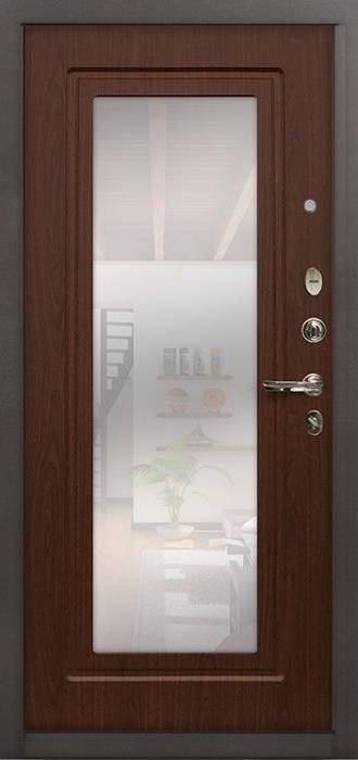Входная дверь с зеркальными вставками №56 сочетает надежность металлической конструкции и удобство функционального декора. Зеркало не только украшает интерьер, но и делает помещение визуально просторнее, что особенно ценно для квартир и офисов. Для частного дома такая дверь добавляет практичности — всегда можно взглянуть на отражение, выходя на улицу. Отделка выполнена из панелей МДФ с ПВХ-покрытием, устойчивым к царапинам и мелким повреждениям, что обеспечивает долговечность и сохранение первоначального вида. Каркас собран из профильной трубы, усилен рёбрами жёсткости и металлическим листом толщиной 2 мм, благодаря чему дверь выдерживает серьёзные нагрузки и обеспечивает защиту от взлома. Два контура уплотнения препятствуют проникновению сквозняков и пыли, а резиновый уплотнитель сохраняет плотное прилегание полотна. Замковая система включает надежные российские механизмы Просам и Мосрентген, которые отличаются стабильной работой и высоким ресурсом. Дверь №56 — это прочность, удобство и современный дизайн в одной конструкции. Входная дверь с зеркальными вставками №56 от производителя: быстрое изготовление и монтаж в Черноголовке, индивидуальные размеры, широкий выбор материалов и фурнитуры, официальная гарантия до 10 лет.