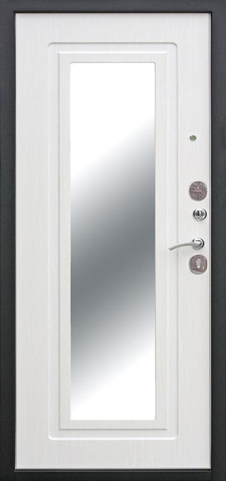Надёжность металлической двери всегда в приоритете, но когда она получает дополнительное оснащение, результат становится особенно удобным. Входная дверь с зеркалом №78 удачно объединяет прочность конструкции и практичность деталей: массивный каркас из профильной трубы, лист стали толщиной 2 мм и усиленные рёбра жёсткости формируют крепкий защитный барьер, а зеркало на внутренней стороне делает её частью интерьера, экономя место и добавляя визуального простора. Снаружи используется молотковое напыление, устойчивое к царапинам и погодным перепадам, благодаря чему дверь подходит как для квартиры, так и для частного дома. Внутренняя отделка выполнена плитой МДФ, которая выглядит стильно и сохраняет аккуратность даже при активной эксплуатации. Два контура уплотнения помогают защитить помещение от сквозняков, а при необходимости конструкцию можно дополнить шумоизоляцией, современными замками и даже видеодомофоном. Входная дверь с зеркалом №78 от производителя: быстрое изготовление и монтаж в Черноголовке, индивидуальные размеры, широкий выбор материалов и фурнитуры, официальная гарантия до 10 лет.