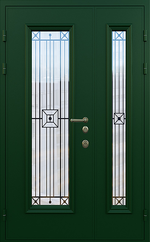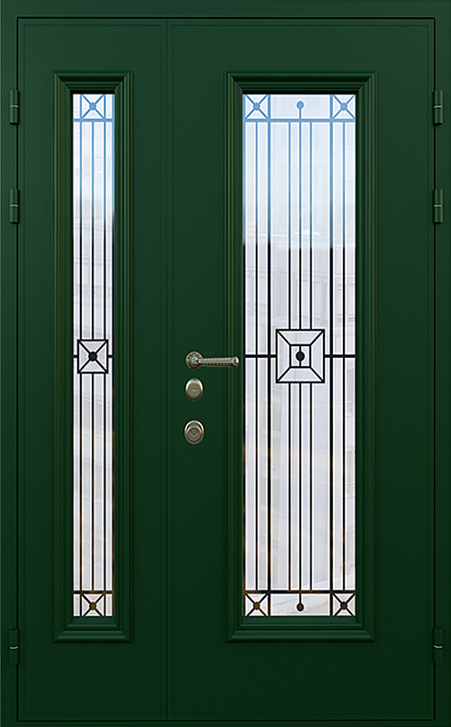 Зеленая полуторная дверь со стеклопакетом для частного дома №18 — это идеальный выбор для тех, кто хочет добавить в свой дом надежность и стиль. Элементы декора, такие как багет и ковка, придают двери элегантный вид, который идеально гармонирует с фасадом загородного дома. Панели МДФ с ПВХ-покрытием, использованные для внешней и внутренней отделки, обеспечивают высокую стойкость к механическим повреждениям и внешним воздействиям, сохраняя прекрасный внешний вид на долгое время. Зеленая полуторная дверь со стеклопакетом для частного дома №18 от производителя: быстрое изготовление и монтаж в Черноголовке, индивидуальные размеры, широкий выбор материалов и фурнитуры, официальная гарантия до 10 лет.