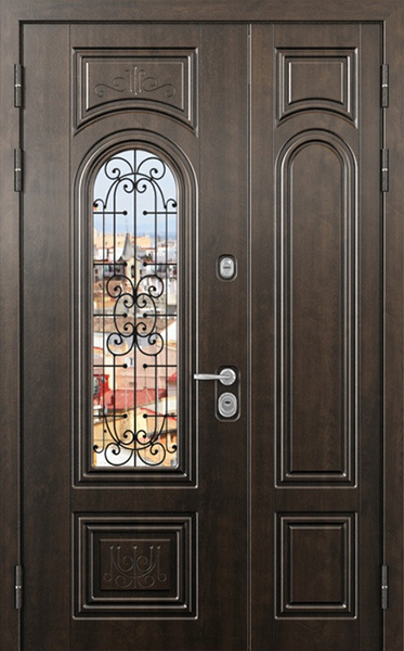 Двупольная стальная дверь со стеклопакетом и кованым узором №24 станет отличным выбором для тех, кто ценит не только безопасность, но и стиль. Внешняя и внутренняя отделка выполнены из МДФ, что придает двери элегантный и современный вид, а также обеспечивает высокую устойчивость к механическим повреждениям и износу. Стеклопакет и кованые элементы добавляют изысканности и уникальности, при этом сохраняя прочность конструкции. Двупольная стальная дверь со стеклопакетом и кованым узором №24 от производителя: быстрое изготовление и монтаж в Черноголовке, индивидуальные размеры, широкий выбор материалов и фурнитуры, официальная гарантия до 10 лет.