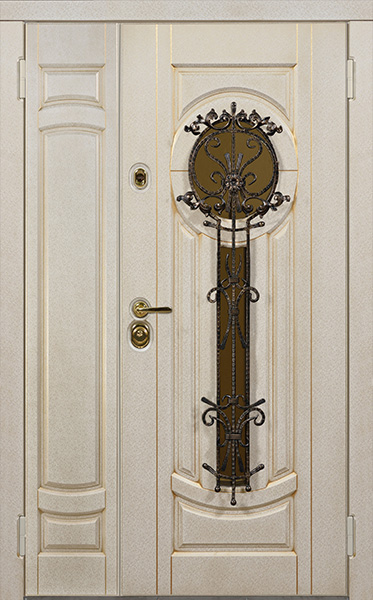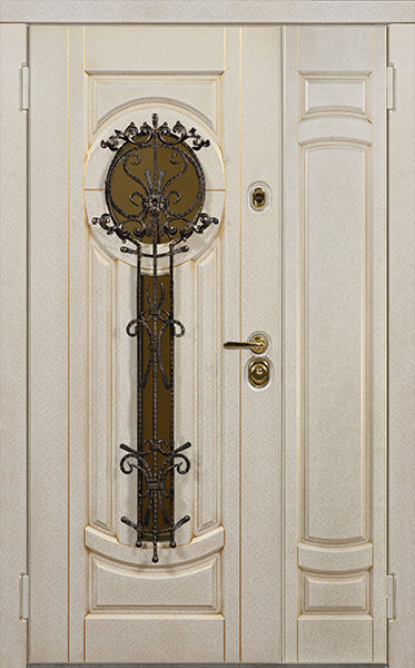 Двухстворчатая парадная дверь с ковкой и стеклом белая №30 — это сочетание красоты и надёжности. Конструкция из профильной трубы 50х25 мм и металлического листа толщиной 2 мм обеспечивает долговечность и стойкость к внешним воздействиям. Элементы ковки придают двери изысканный вид, а стеклопакет позволяет создать атмосферу лёгкости и прозрачности. Внешняя и внутренняя отделка выполнены из плиты МДФ, что делает дверь не только привлекательной, но и устойчивой к механическим повреждениям. Для дополнительной герметичности используются уплотнители с двумя контурами, а блокираторы обеспечат безопасность. Вариативность размеров и возможность добавления дополнительных опций, таких как шумо- и теплоизоляция, делают эту модель универсальной для установки в любом интерьере. Двухстворчатая парадная дверь с ковкой и стеклом белая №30 от производителя: быстрое изготовление и монтаж в Черноголовке, индивидуальные размеры, широкий выбор материалов и фурнитуры, официальная гарантия до 10 лет.