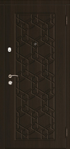 Офисная дверь с фрезеровкой плитка №6 сочетает в себе стиль и надежность, подходя как для офисных помещений, так и для частных домов и квартир. Внешняя отделка с порошковым напылением защищает дверь от внешних повреждений и обеспечивает долговечность, сохраняя привлекательный внешний вид даже при активном использовании. Внутреннее покрытие из МДФ добавляет теплоту и современность, делая дверь идеальной для разных интерьеров. Конструкция из профильной трубы 50х25 мм и металл толщиной 2 мм гарантируют прочность и стойкость к механическим повреждениям, а ребра жесткости из трубы 40х25 мм усиливают ее надежность. Замки и блокираторы обеспечивают дополнительную безопасность, а двухконтурный резиновый уплотнитель помогает сохранить тепло и защитить от лишнего шума. Эта модель легко адаптируется под любые требования, добавив элементы, такие как стеклопакеты, зеркала или кованые украшения. Офисная дверь с фрезеровкой плитка №6 от производителя: быстрое изготовление и монтаж в Черноголовке, индивидуальные размеры, широкий выбор материалов и фурнитуры, официальная гарантия до 10 лет.