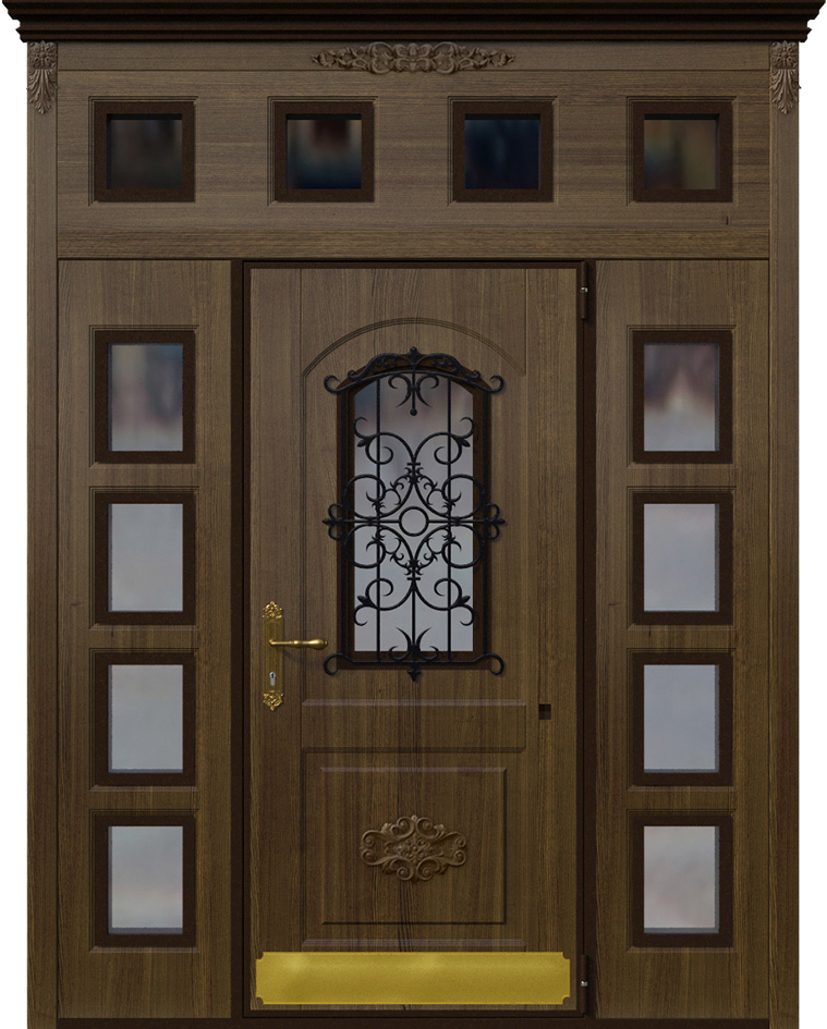 Эта модель выделяется своим масштабом и декоративностью: двухстворчатая дверь со вставками и ковкой №2 подчеркивает парадность входа и придает фасаду респектабельность. Основу составляет прочный каркас из стальных профильных труб с листом металла толщиной 2 мм и ребрами жесткости, что обеспечивает долговечность и защиту. Снаружи и внутри полотно облицовано накладками МДФ, которые позволяют воплотить различные варианты текстур и оттенков, сохраняя устойчивость к механическим повреждениям и влиянию внешней среды. Кованые элементы вносят в образ двери нотку изысканности и индивидуальности, делая ее центральным акцентом всего фасада. Для безопасности предусмотрены два замка турецкого производителя Kale Kilit — цилиндровый и сувальдный, каждый с ригелями, усиливающими защиту. Такая дверь сочетает надежность металлической конструкции с эстетикой классического дизайна, превращая вход в настоящий архитектурный акцент. Двухстворчатая дверь со вставками и ковкой №2 от производителя: быстрое изготовление и монтаж в Черноголовке, индивидуальные размеры, широкий выбор материалов и фурнитуры, официальная гарантия до 10 лет.