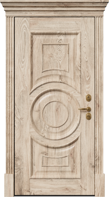 Входная дверь со стеклопакетом и патиной для загородного дома белая №29