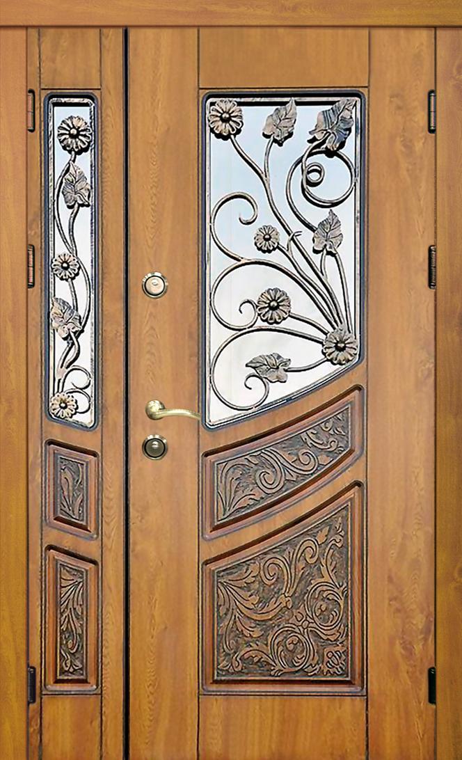 Дверь со стеклопакетом входная №411 создана для тех, кто ценит надежность и одновременно хочет подчеркнуть стиль фасада своего дома. Прочный стальной каркас из профильной трубы с листом металла толщиной 2 мм и системой ребер жесткости гарантирует долговечность и защиту от внешних воздействий. Панели из натурального дерева с обеих сторон придают полотну благородный облик, устойчивый к царапинам и погодным перепадам, сохраняя первоначальный вид долгие годы. Стеклопакет не только украшает дверь, но и наполняет прихожую естественным светом, создавая уют и ощущение открытости. Два контура уплотнителей предотвращают сквозняки и влагу, а встроенные блокираторы усиливают защитные функции. Такая модель удачно совмещает декоративность и практичность, делая парадный вход в коттедж или частный дом одновременно безопасным и выразительным. Дверь со стеклопакетом входная №411 от производителя: быстрое изготовление и монтаж в Черноголовке, индивидуальные размеры, широкий выбор материалов и фурнитуры, официальная гарантия до 10 лет.
