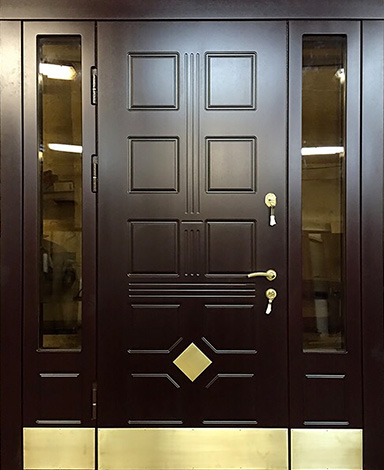Натуральное дерево в отделке придаёт конструкции основательность и благородный внешний вид, а металлический каркас с листом стали толщиной 2 мм и системой ребер жёсткости обеспечивает надёжную защиту и долговечность. Входная дверь с остеклением №70 особенно востребована в частных домах и коттеджах, где важна не только безопасность, но и эстетика. Стеклянные элементы делают полотно визуально легче и наполняют прихожую естественным светом, при этом оставаясь частью прочной конструкции. Для комфорта предусмотрены два контура уплотнения, а терморазрыв в коробке и полотне защищает от промерзания и сохраняет тепло даже в сильные морозы. Итальянские замки Cisa цилиндрового и сувальдного типа дополняют высокий уровень безопасности. Возможность добавить кованые элементы, зеркало или стеклопакет позволяет адаптировать модель под архитектуру дома, подчёркивая индивидуальность и вкус владельцев. Входная дверь с остеклением №70 от производителя: быстрое изготовление и монтаж в Черноголовке, индивидуальные размеры, широкий выбор материалов и фурнитуры, официальная гарантия до 10 лет.