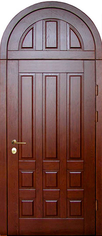 Высокая арочная входная дверь массив №26 идеально подчеркнет величие вашего частного дома или коттеджа. Внешняя и внутренняя отделка из массива дерева придают двери естественную красоту и изысканность. Каркас и полотно выполнены из профильной трубы 50х25 мм, с дополнительной жесткостью благодаря ребрам из профильных труб 40х25 мм и металлическому листу толщиной 2 мм. Элементы конструктивной прочности обеспечат долговечность, а два контура резинового уплотнителя гарантируют надежную герметичность. Несмотря на отсутствие терморазрыва, дверь остается надежной и безопасной, дополнительно оснащенной блокираторами для защиты. Эта дверь станет настоящим акцентом в вашем доме, сочетая эстетическую привлекательность и отличную защиту. Высокая арочная входная дверь массив №26 от производителя: быстрое изготовление и монтаж в Черноголовке, индивидуальные размеры, широкий выбор материалов и фурнитуры, официальная гарантия до 10 лет.