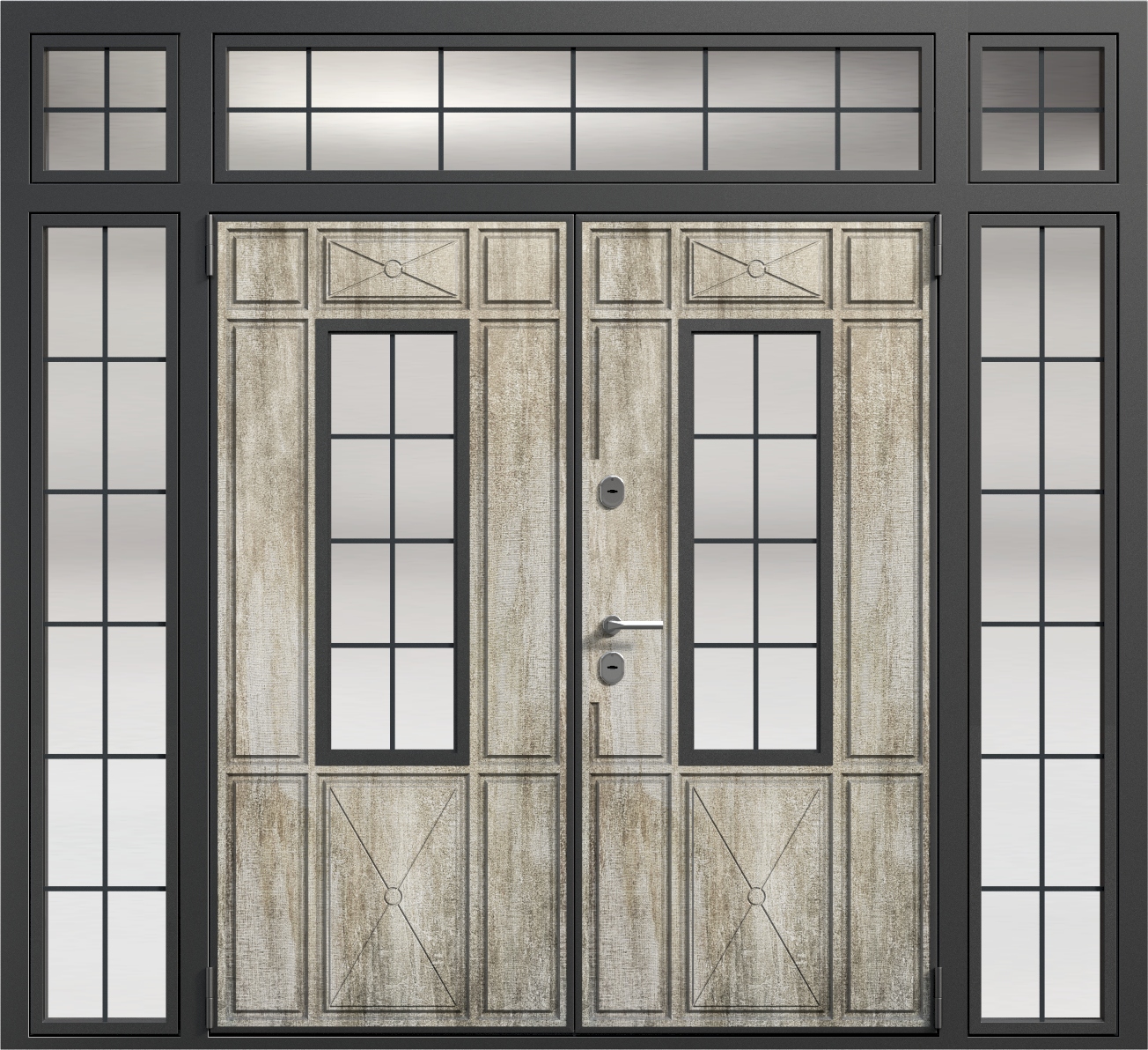 Парадная дверь с остекленной фрамугой №6 — это идеальный выбор для тех, кто ценит элегантность и функциональность. Внешняя отделка из панелей МДФ ПВХ обеспечивает долговечность и устойчивость к внешним воздействиям, что делает эту модель подходящей как для частных домов, так и для офисных помещений. Прочная конструкция с каркасом из профильной трубы 50x25 мм и листом металла толщиной 2 мм гарантирует долговечность и высокую безопасность. Замки Kale Kilit с тремя ригелями обеспечат надежную защиту, а уплотнение с двумя контурами эффективно защитит от шума и холода. Дополнительные элементы, такие как стеклопакеты, зеркала или кованые элементы, можно добавить по вашему желанию, позволяя адаптировать дверь под любые требования. Парадная дверь с остекленной фрамугой №6 от производителя: быстрое изготовление и монтаж в Черноголовке, индивидуальные размеры, широкий выбор материалов и фурнитуры, официальная гарантия до 10 лет.